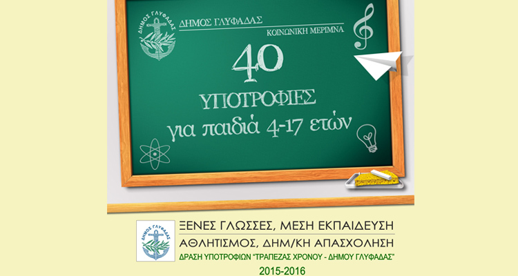 Ο Δήμος Γλυφάδας πραγματοποίησε με επιτυχία μέσω της Τράπεζας Χρόνου τη «δράση υποτροφιών» για το έτος 2015-2016. Συνολικά, 15 ιδιωτικά εκπαιδευτικά κέντρα και σύλλογοι της πόλης που συμμετέχουν στη δράση, προσέφεραν 40 ετήσιες υποτροφίες στους ωφελούμενους των δημοτικών κοινωνικών δομών (πρόγραμμα «Κοινωνικές Δομές για την Άμεση Αντιμετώπιση της Φτώχειας στο Δήμο Γλυφάδας»), προκειμένου να καλυφθούν οι εκπαιδευτικές ανάγκες των παιδιών.