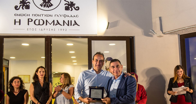 Στο χαιρετισμό του, ο Πρόεδρος της Ένωσης Ποντίων Γλυφάδας Κυριάκος Τιλγκερίδης αναφέρθηκε στην πλούσια δραστηριότητα του συλλόγου, ο οποίος αριθμεί 700 μέλη: Μίλησε για τα τμήματα ποντιακών και παραδοσιακών χορών, το τμήμα ιστορίας, το τμήμα εκμάθησης λύρας, καθώς και το τμήμα κατασκευής λύρας, το οποίο -όπως σημείωσε- είναι το μοναδικό στην Ελλάδα που λειτουργεί οργανωμένα σε ποντιακό σύλλογο. Συνεχίζοντας, ο κ. Τιλγκερίδης τόνισε: «Ξεκινάμε μια νέα χρονιά δραστηριοτήτων σε ένα κτίριο πραγματικό κόσμημα για την περιοχή μας, σε μια πανέμορφη νέα πλατεία, την πλατεία Πόντου. Σε αυτό το ταξίδι σάς θέλουμε κοντά μας, σας θέλουμε να είστε κομμάτι της ζωής μας». Ευχαριστώντας τον Δήμαρχο για την τεράστια συμβολή του στην αποπεράτωση των εργασιών ανακαίνισης, του απένειμε τιμητική πλακέτα «με ευγνωμοσύνη για την προσφορά του στον σύλλογό μας». Η εκδήλωση ολοκληρώθηκε με γλέντι, στο οποίο η ποντιακή λύρα (κεμεντζές) πρωταγωνίστησε.