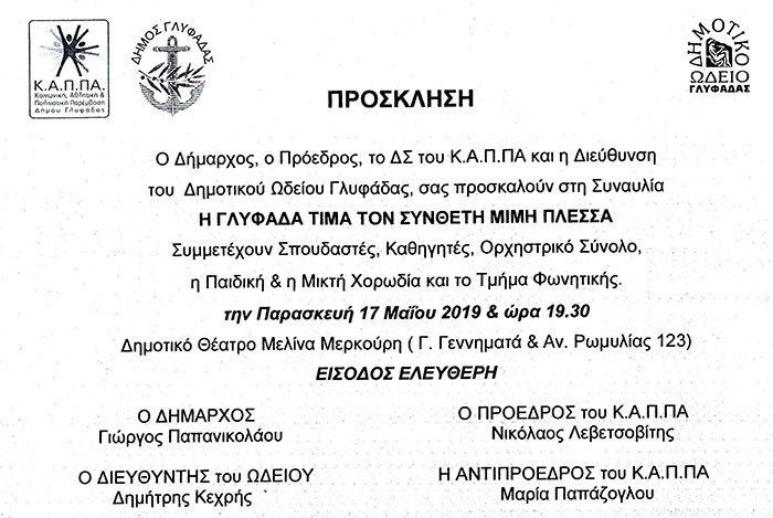 Η ΓΛΥΦΑΔΑ ΤΙΜΑ ΤΟΝ ΜΙΜΗ ΠΛΕΣΣΑ pinelopi LIVING IN THE SOUTH 7 Μαΐου, 2019 Η ΓΛΥΦΑΔΑ ΤΙΜΑ ΤΟΝ ΜΙΜΗ ΠΛΕΣΣΑ