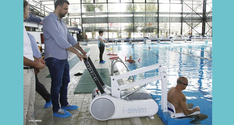 Το σύγχρονο αναβατόριο i-Swim είναι ειδικά σχεδιασμένο για άτομα με κινητικά προβλήματα, καθώς τους δίνει τη δυνατότητα να έχουν πρόσβαση στην πισίνα με άνεση και ασφάλεια. Πιστοποιημένο με τις αυστηρότερες τεχνικές προδιαγραφές, είναι εξαιρετικά εύκολο στη χρήση του και στους ελιγμούς του, διαθέτοντας πολλαπλά επίπεδα ασφαλείας. Ο μηχανισμός αυτός έχει ήδη τοποθετηθεί σε πολλά δημόσια και ιδιωτικά κολυμβητήρια σε όλη την Ευρώπη.